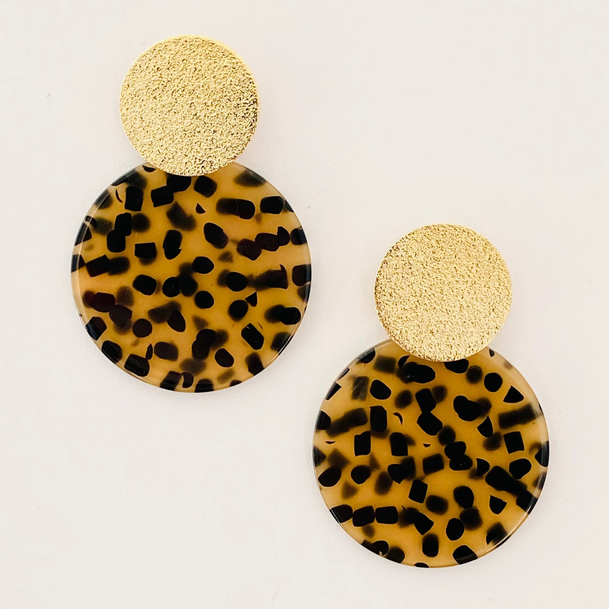 Élégantes boucles d’oreilles en or fin et acétate, mêlant brillance intemporelle et design contemporain. Leur finition dorée sublime chaque tenue avec une touche de sophistication discrète. Résistantes et raffinées, elles incarnent le luxe au quotidien. Un indispensable à offrir ou à s’offrir.